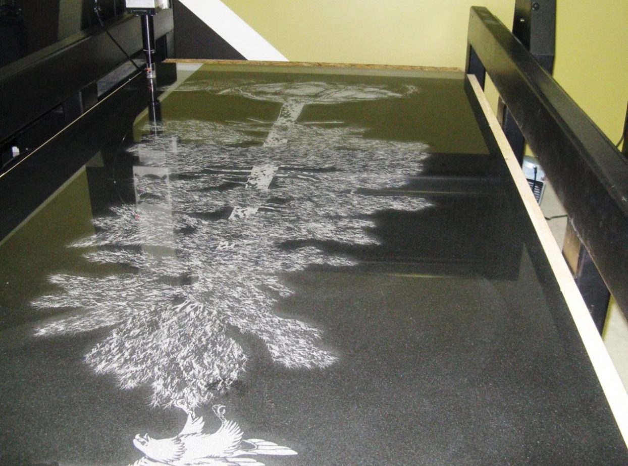 A technology that uses high-pressure water mixed with abrasives to cut intricate designs and shapes in granite.