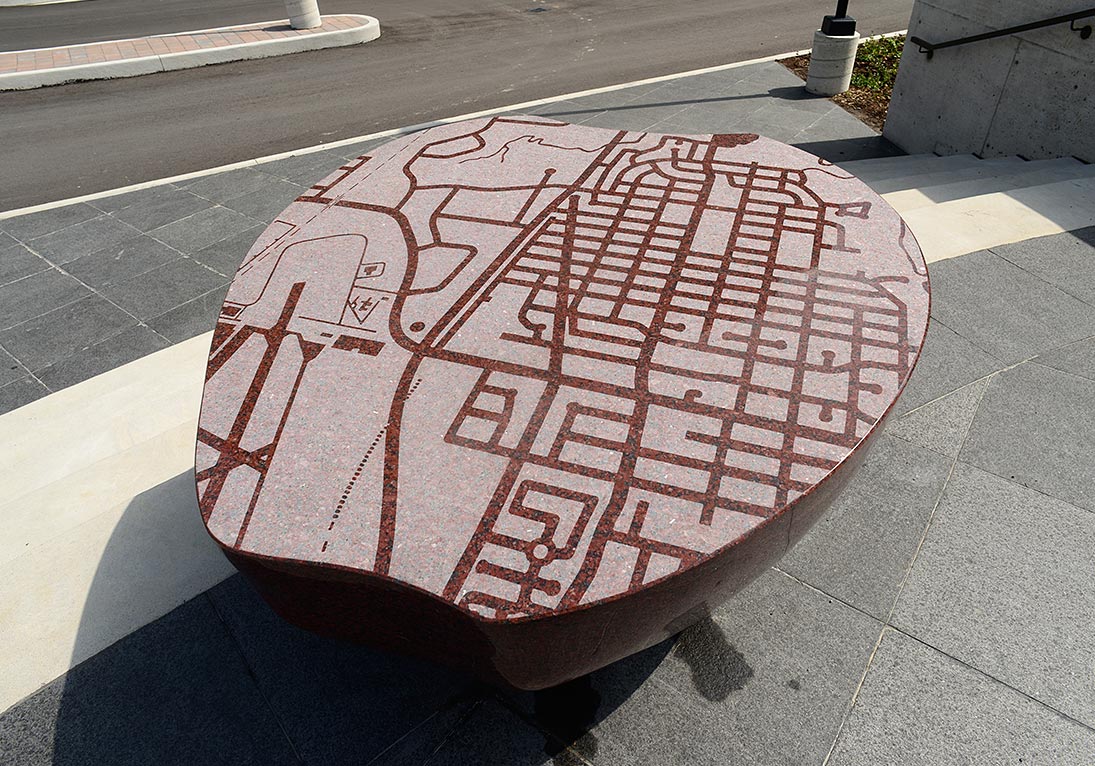 We worked with Aldershot Landscape on this project, supplying them with all the granite and detailed shop drawings to help them with the final install of this eye-popping public piece.