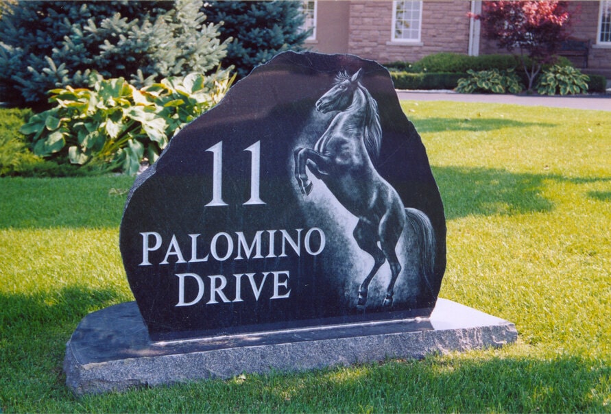 We’ve also created pieces for public parks, country clubs, apartment buildings, villages and cemeteries (if you take a drive to the village of Glancaster, ON or visit St Paul’s Anglican Cemetery near Millbrook, ON you’ll be welcomed by signage created by an HGH Granite).
