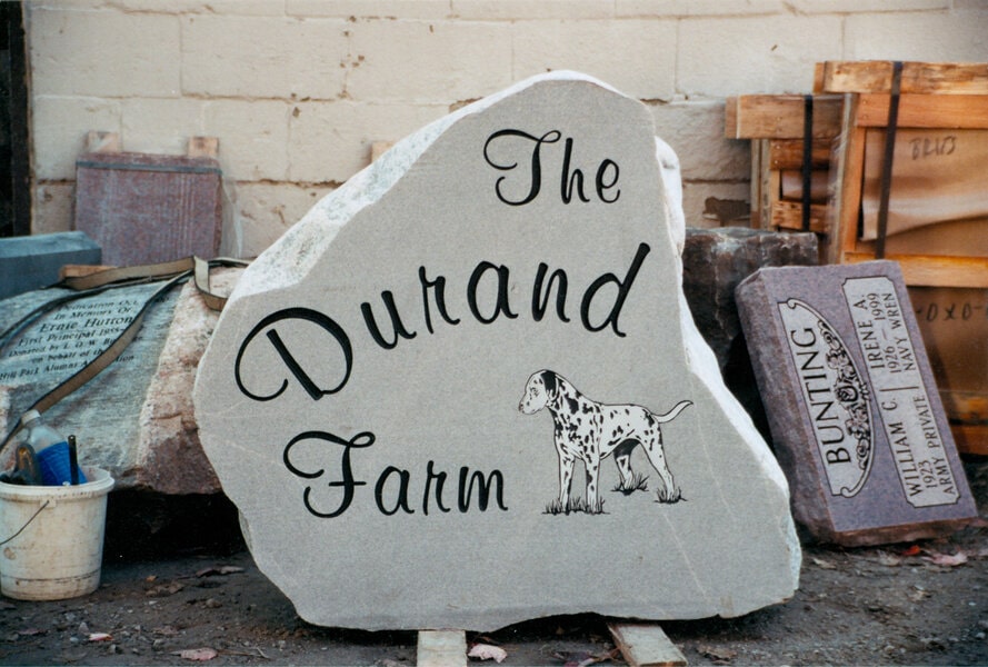 Venture beyond cemeteries, and you’ll find our fieldstone creations welcoming guests and customers alike to commercial businesses. Like the bold black signage we created for OK Tire in Dundas, ON, or the equally punchy sign we created for Grisdale Enterprises Inc at the same location. We love that these pieces blend nature with the brand/ business’s ethos, and existing look and feel.
