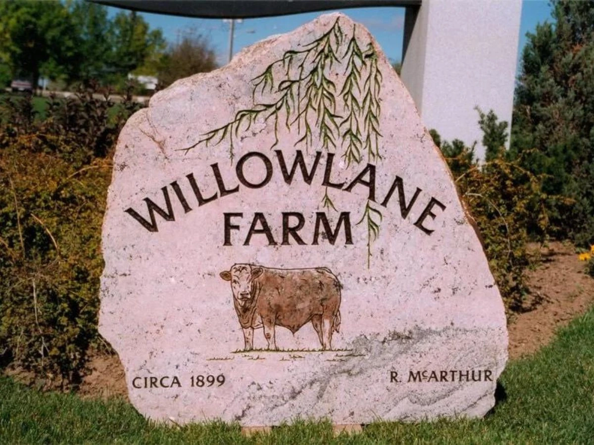 Stone signage stands proudly at Flat Rock Cellars and Stone Lofts, in Jordan, ON; and Willowlane Farm in Hamilton, ON.